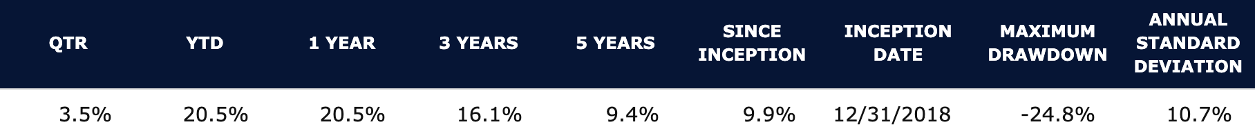 Performance is annualized for periods longer than one year.