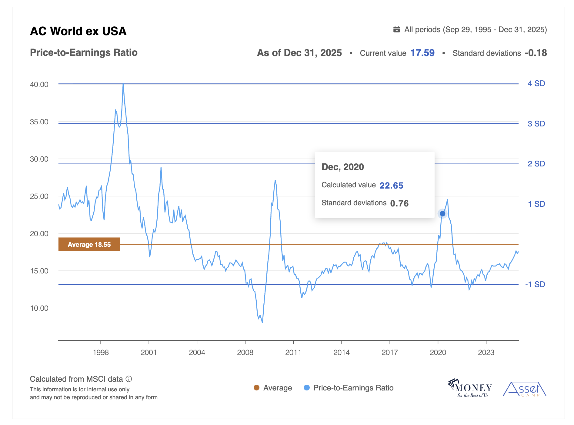 Due to those valuation differences, the margin of safety for U.S. stocks is less than for non-U.S. stocks.