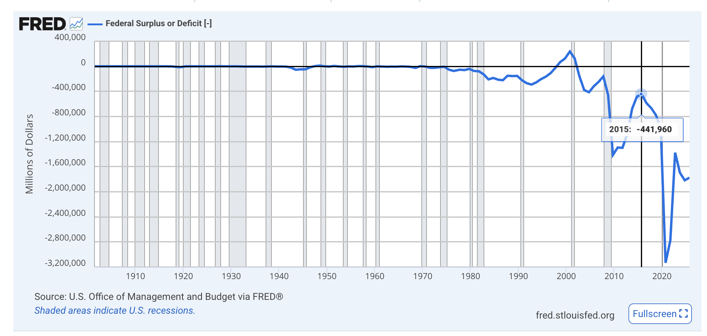 Ten years ago, the U.S. federal budget deficit was $440 billion. In fiscal year 2025, which ended last September, the deficit totaled $1.8 trillion. It reached $3.1 trillion in 2020.