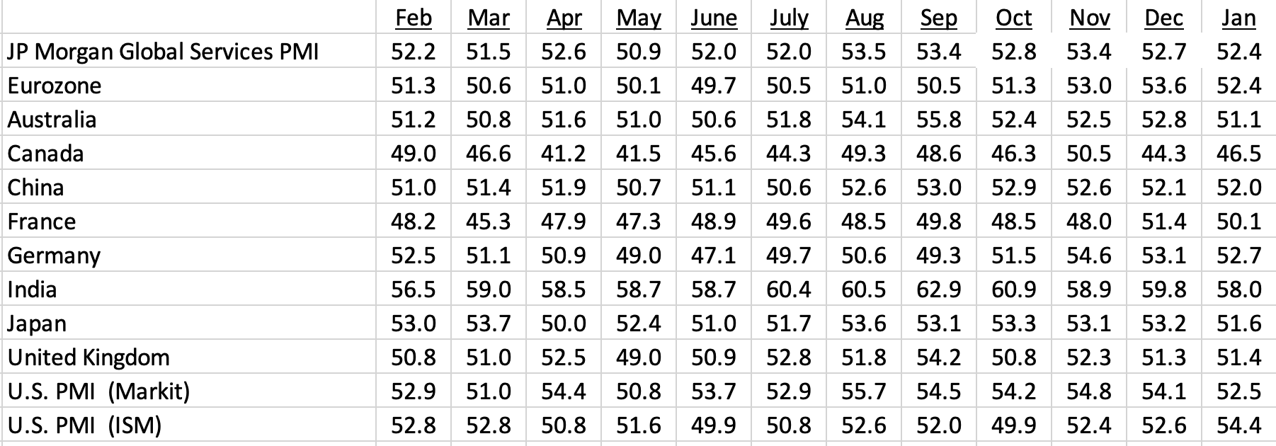 Services PMIs