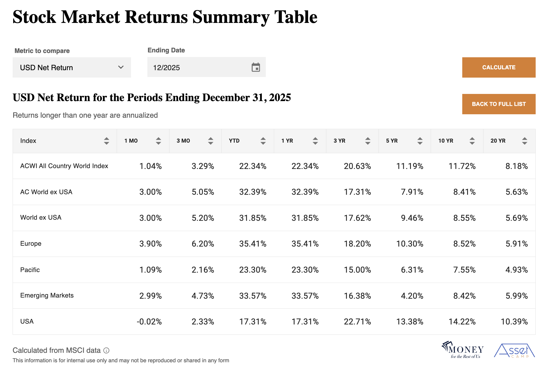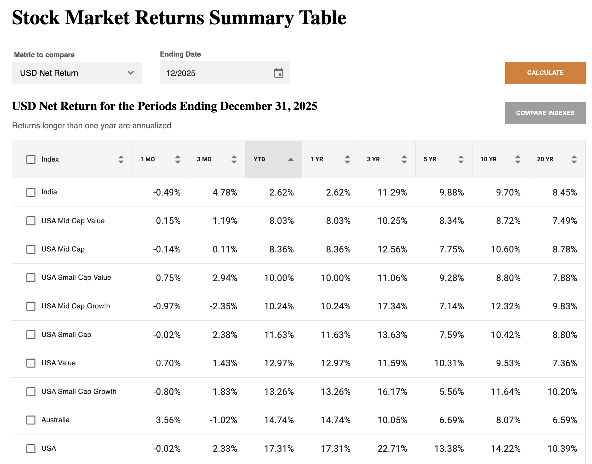 The top ten best-performing stock indexes returned over 30% in 2025, led by emerging and frontier markets, Europe, and non-U.S. value strategies.