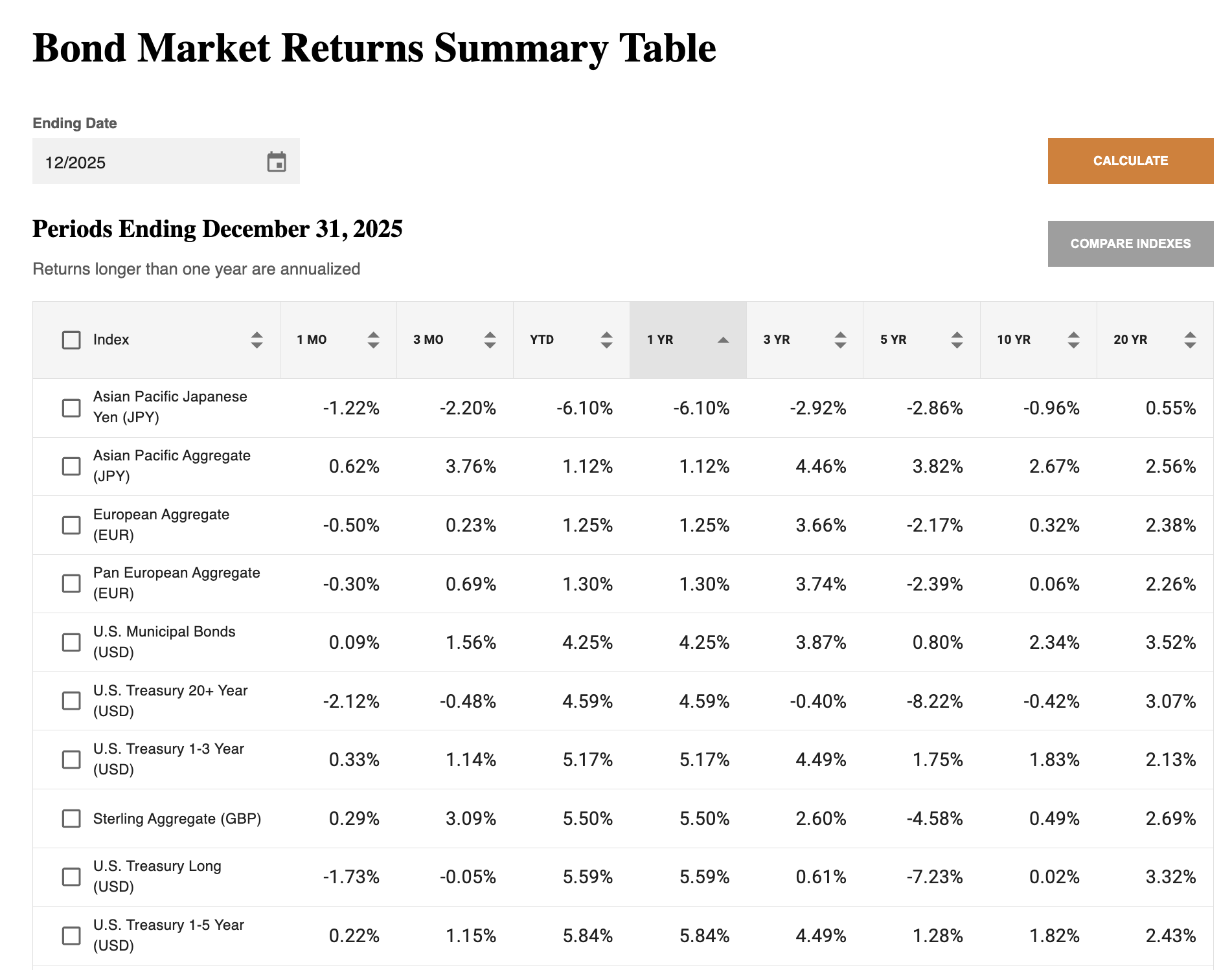 U.S. bonds returned 7.3% in 2025, benefiting from falling interest rates, as yields on the U.S. Treasury Index declined by 0.6% in the year.