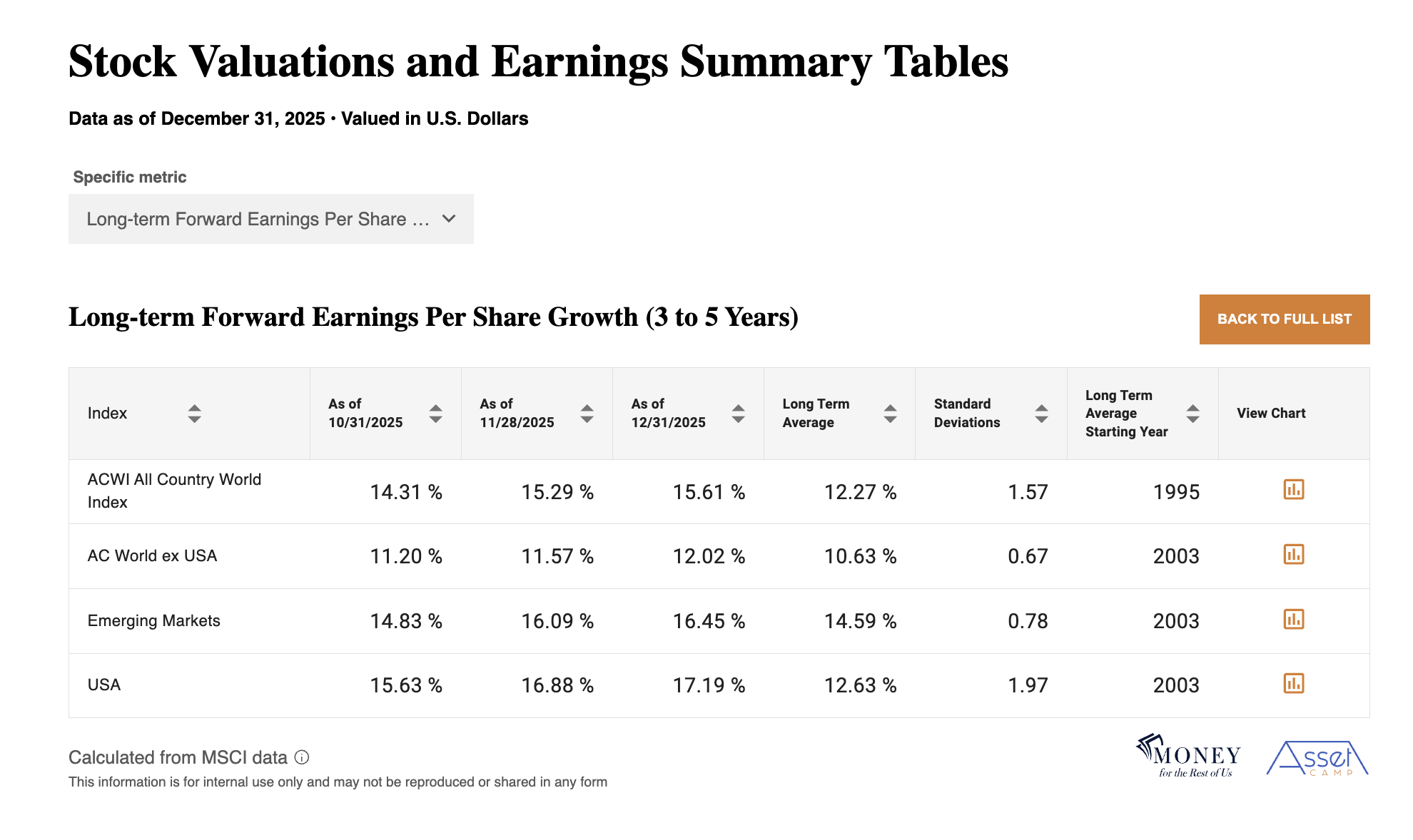 Sell-side analysts believe they can, based on aggregated bottom-up company-by-company earnings estimates. Global earnings per share is expected to grow 14.1% over the next year and 15.6% over the next three to five years.