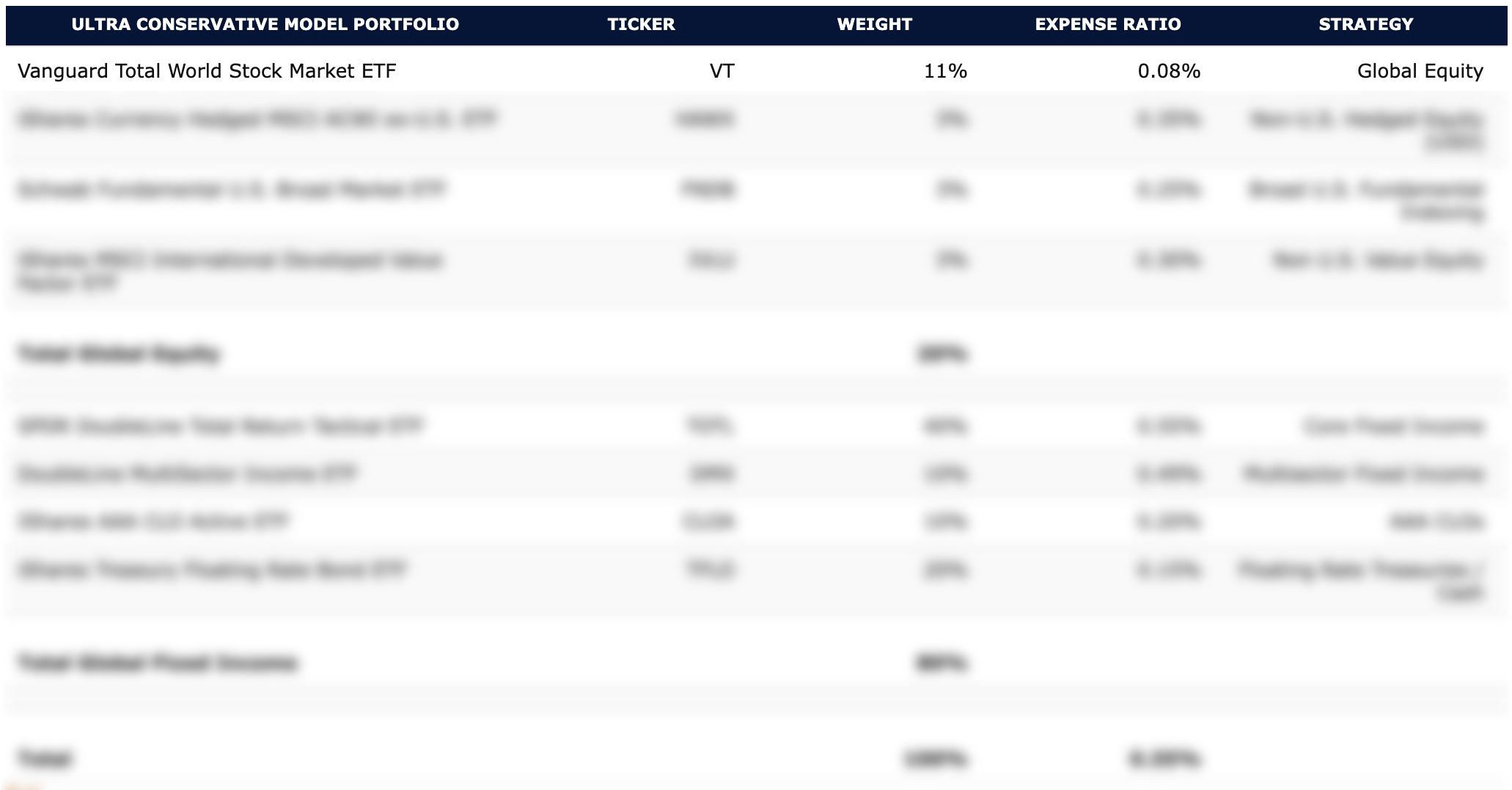Ultra Conservative Model Portfolio