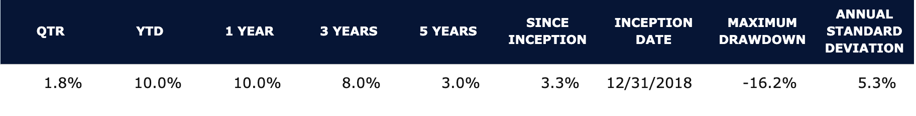 Performance is annualized for periods longer than one year.